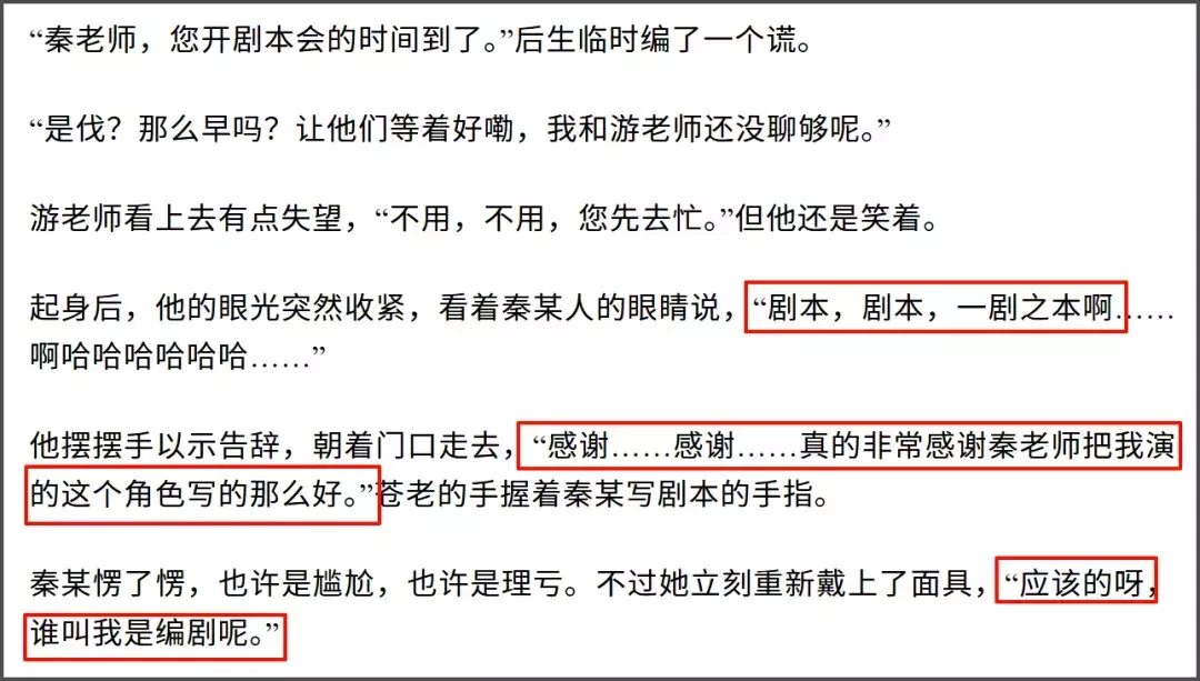 临了秦雯和游本昌照实聊了,但没聊很久,因为王家卫打电话叫东说念主把秦雯“救出来”了。游本昌还很不舍,感谢秦雯把脚色写得这样好,不外还好没聊很久,因为据古二说游本昌的脚色是古二用沪语写的,和秦雯可能真没什么好聊的。